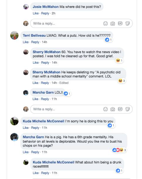 THESE ARE SCREENSHOTS I TOOK OF SOME OF THE COMMENTS MADE ON MY FRIEND'S FACEBOOK PAGE. THEY TOLD PEOPLE TO GO TO HIS HOUSE, HONK THEIR HORNS ETC. THEY WERE FUELED BY A CAMPAIGN OF DOG BREEDERS TO TAKE HIM OUT SO THAT THEY COULD GET MORE DOG SALES. THEY POSTED ON ONLINE HE WAS CRAZY. HE IS A VET WITH PTSD. I REPORTED ON MARK ZUCKERBERG'S PAGE ALONG WITH THE SCREENSHOTS AND TO FACEBOOK BEGGING THEM TO DO SOMETHING. ZUCKERBERG NEVER RESPONDED AND FACEBOOK SAID IT DIDN'T BREAK "COMMUNITY" STANDARDS. SO THREATENING SOMEONE'S LIFE IS OK. DESTROYING A VET WITH PTSD LIFELONG LOVE IS OK. SO DON'T B ELIEVE ANYTHING MARK ZUCKERBERG SAYS BECAUSE THIS IS THE PROOF HE DOESN'T CARE ABOUT VIOLENCE UNTLESS IT IS VIOLENCE AGAINST THOSE WHO SUPPORT HIS VIEWPOINT.